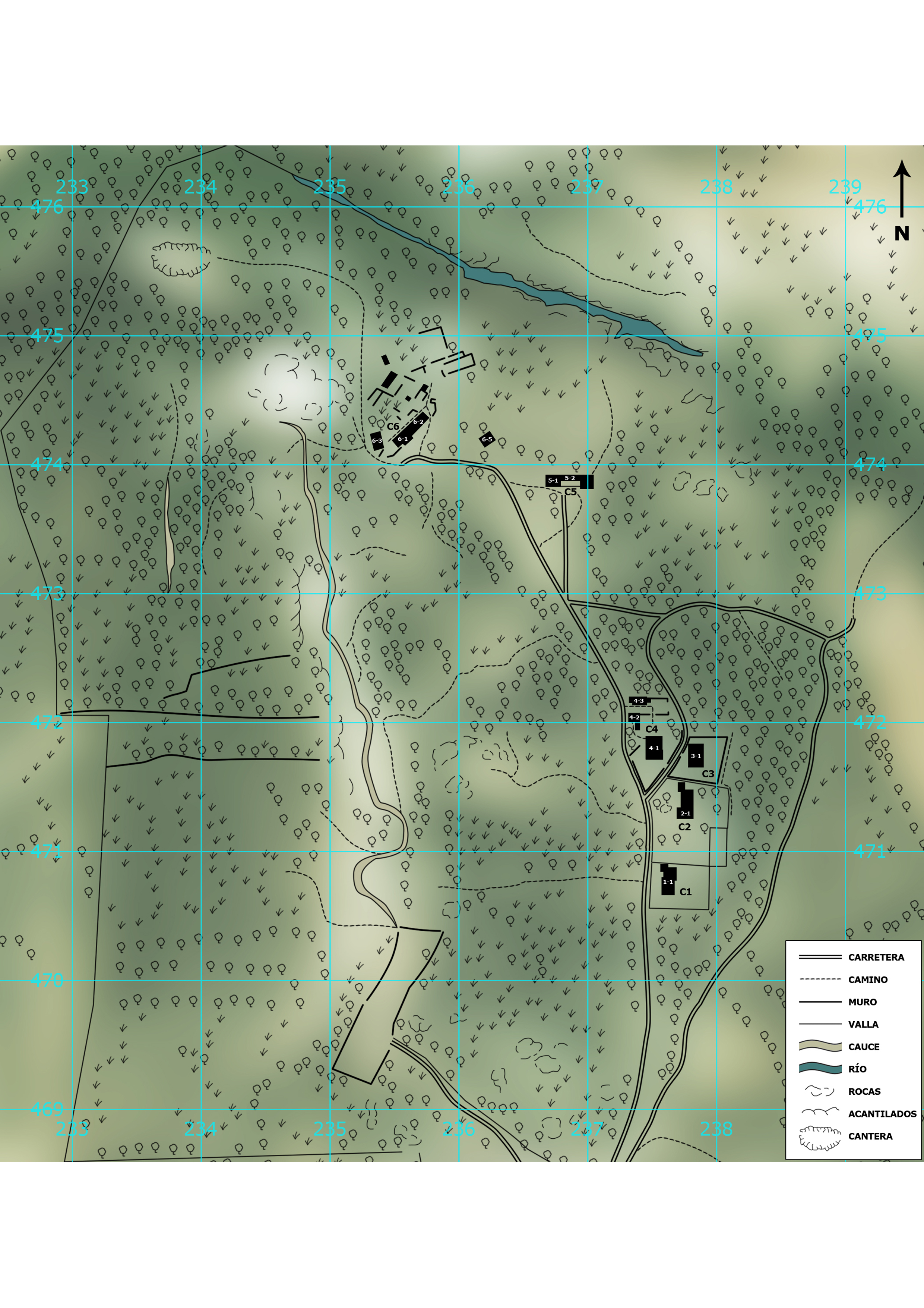 -Las cuatro cifras se componen de las tres que vienen indicadas en el mapa para cada línea y una más de precisión pues entre cada coordenada del mapa hay 100 metros (cada cuadrante es de 100 x 100 metros, un área muy amplia y por tanto se debe concretar dónde, dentro de ese área, te ubicas). Así pues, tomando como ejemplo la casa 3-1 del complejo 3 sus coordenadas serían 2378 - 4718. Por la contra, la casa 4-2 del complejo 4 se ubicaría en 2374 -4720 (al estar encima de la coordenada).